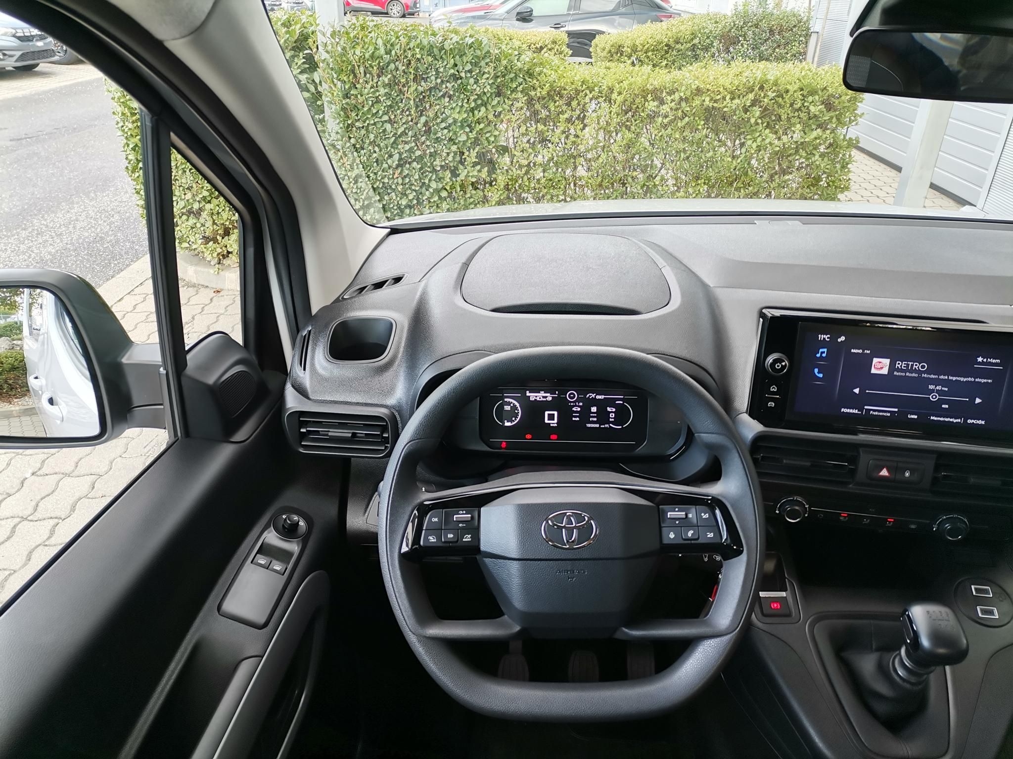 Toyota márkakereskedéstől. Az autót 2024.10.10-én helyeztük forgalomba új autóként Magyarországon és végig cégünk tulajdonában volt. Sérülésmentes, újszerű állapotban van, az első szervize 2025.09.05-én elvégezve. A hirdetett árban gyári vonóhoroggal valamint téli és nyári gumikkal ( külön felni nélkül )adjuk át az autót. Gyári garancia 2029 októberéig érvényes. Alvázszám: YAREBYHT2RJ811572 ABS (blokkolásgátló), tolatóradar, vezetőoldali légzsák, utasoldali légzsák, függönylégzsák, fedélzeti komputer, ISOFIX rendszer, állítható kormány, Android Auto, Apple CarPlay, ASR (kipörgésgátló), automata fényszórókapcsolás, automata távfény, bluetooth-os kihangosító, centrálzár, deréktámasz, digitális műszeregység, EBD/EBV (elektronikus fékerő-elosztó), elektromos ablak elöl, elektromos tükör, elektronikus rögzítőfék, érintőkijelző, esőszenzor, ESP (menetstabilizátor), fáradtságérzékelő, fékasszisztens, fényszóró magasságállítás, fűthető tükör, guminyomás-ellenőrző rendszer, hátsó fejtámlák, indításgátló (immobiliser), kétoldali tolóajtó, kikapcsolható légzsák, kormányról vezérelhető hifi, ködlámpa, középső kartámasz, LED fényszóró, manuális (6 fokozatú) sebességváltó, manuális klíma, menetfény, multifunkcionális kijelző, multifunkciós kormánykerék, oldallégzsák, radaros fékasszisztens, rádió, sávtartó rendszer, sávváltó asszisztens, start-stop/motormegállító rendszer, szervokormány, színezett üveg, tábla-felismerő funkció, távolsági fényszóró asszisztens, tempomat, USB csatlakozó, ülésmagasság állítás, ütközés veszélyre felkészítő rendszer, vészfék asszisztens, visszagurulás-gátló, vonóhorog, autóbeszámítás lehetséges, első forgalomba helyezés Magyarországon, első tulajdonostól, frissen szervizelt, garanciális, garantált km futás, keveset futott, nem dohányzó, rendszeresen karbantartott, végig vezetett szervizkönyv, vezetett szervizkönyv, 25%-tól elvihető.